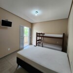 • Quarto 3 (suíte/1º andar) – cama casal e cama beliche, TV, ventilador;