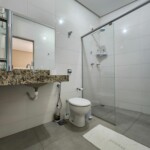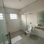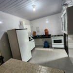 A casa possui 2 banheiros sociais (um no andar térreo e outro no 1º andar), além de lavabo com banheiros feminino e masculino. A cozinha é equipada com geladeira, fogão, micro-ondas, sanduicheira e demais utensílios.
